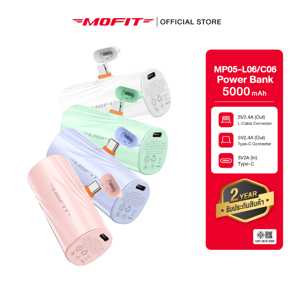 - สายชาร์จ Built-in ในตัวแบบ L-Cable และ Type-C