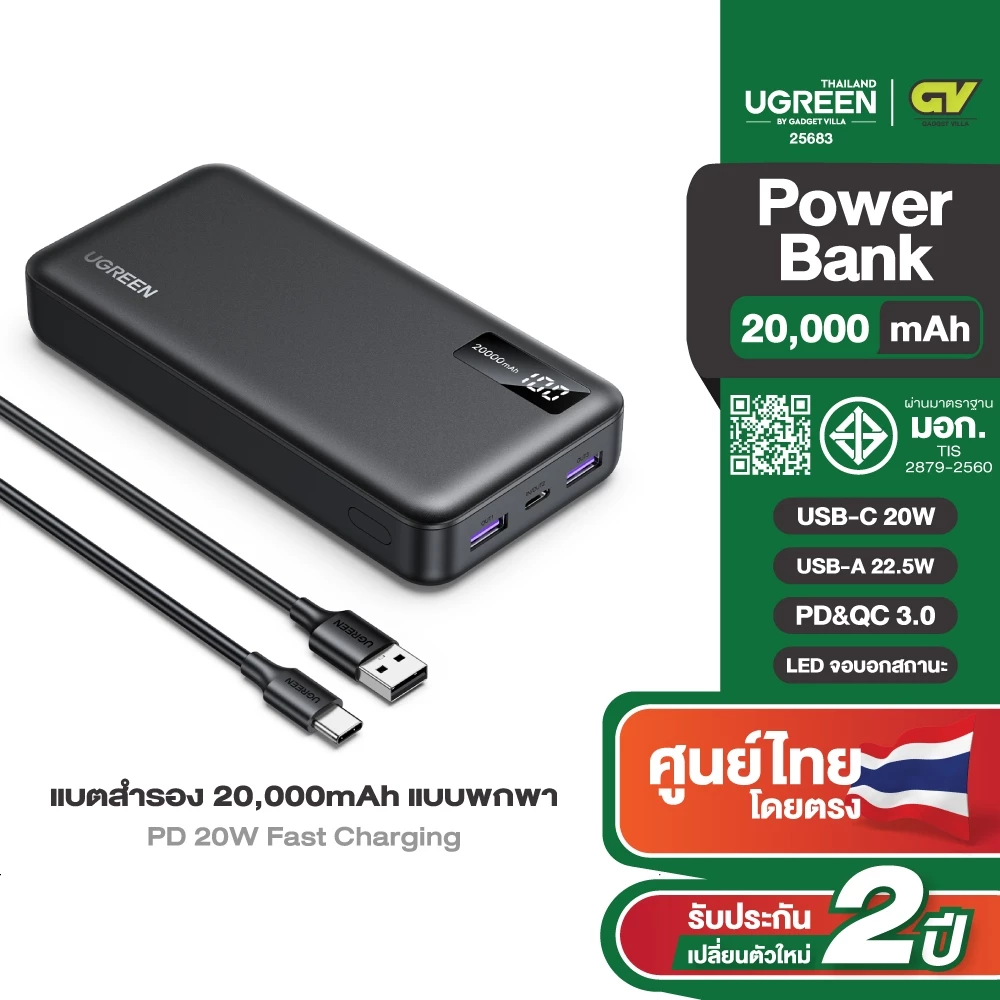 - UGREEN Power Bank พาวเวอร์แบงค์ 10,000mAh รุ่น PB561