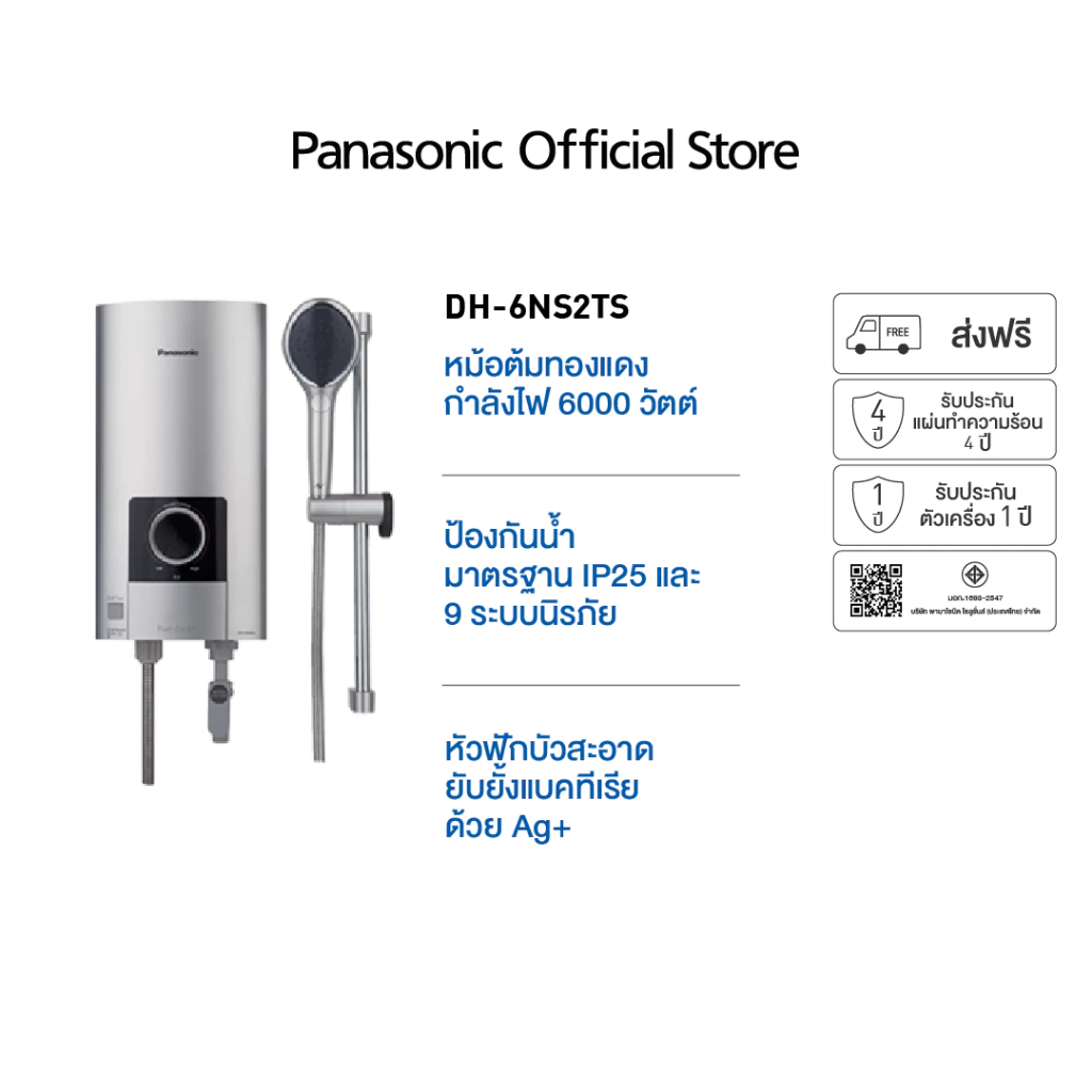 - Panasonic เครื่องทำน้ำอุ่น กำลังไฟสูง 6000 วัตต์ รุ่น DH-6NS2TS