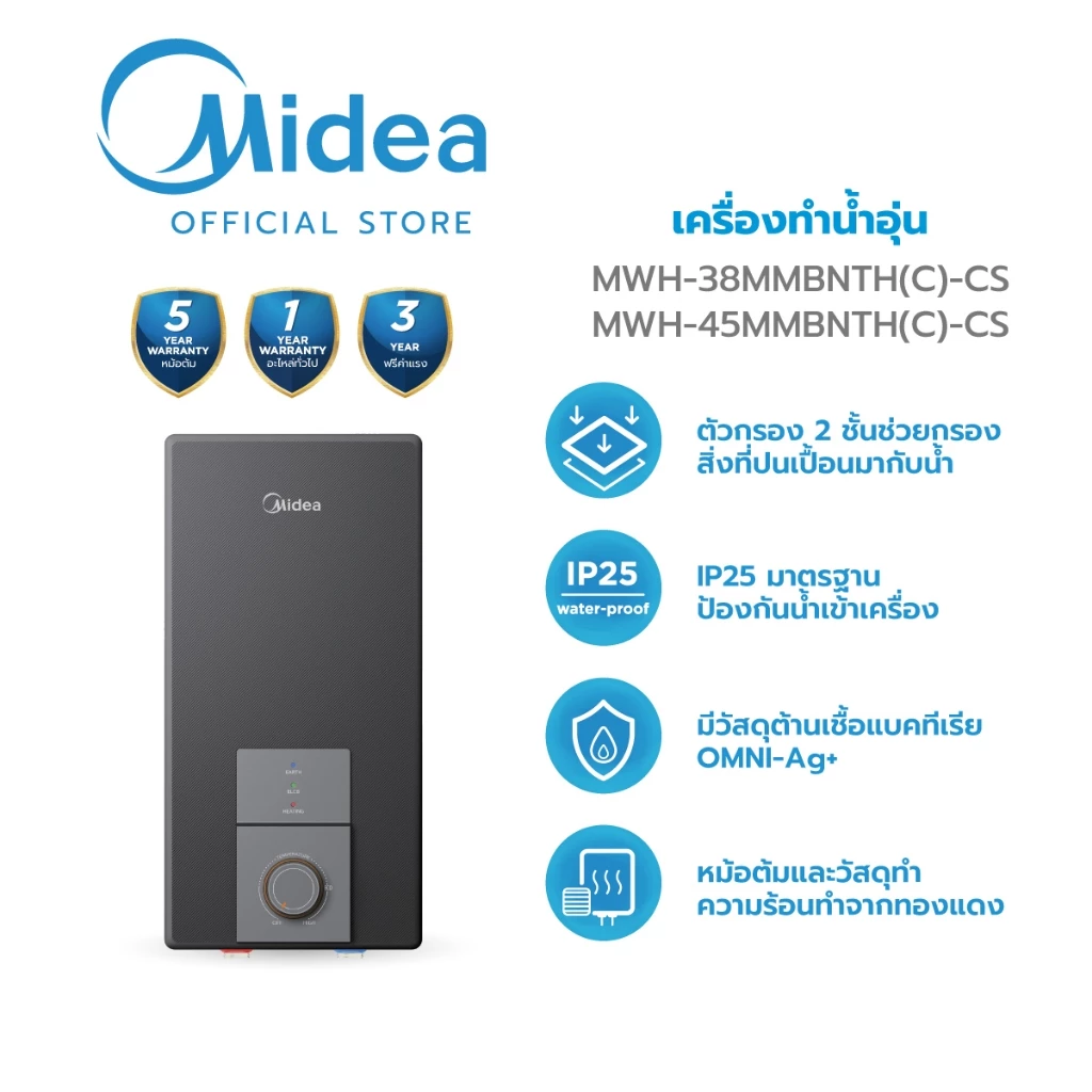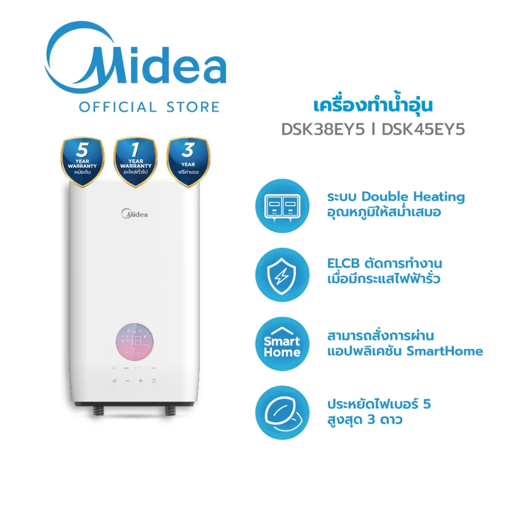 - Midea เครื่องทำน้ำอุ่น BubbleWash รุ่น DSK38EY5 / DSK45EY5