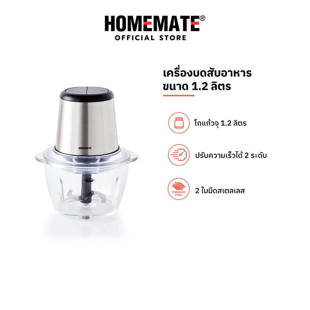 HOMEMATE เครื่องบดสับอาหาร ขนาด 2 ลิตร รุ่น HOM-264101 ทรงพลังและมีประสิทธิภาพมากขึ้น เพื่อช่วยให้การเตรียมอาหารหรือวัตถุดิบของคุณเป็นไปอย่างรวดเร็วและง่ายดาย พร้อมช่วยประหยัดแรง ประหยัดเวลา ไม่ว่าจะเป็นการเตรียมส่วนผสมทั้งของคาว ของหวาน การสับ หั่น หรือบด ก็ใช้ได้ทั้งกับ เนื้อสัตว์ ผัก ถั่ว ฯลฯ หรือแม้กระทั่งการบดน้ำแข็งก็สามารถทำได้ด้วยเครื่องนี้ และหมดปัญหาเรื่องกลิ่นจะติดภาชนะ เครื่องรุ่นนี้ไม่มีกลิ่นติดภาชนะให้ต้องกังวลใจอีกต่อไป