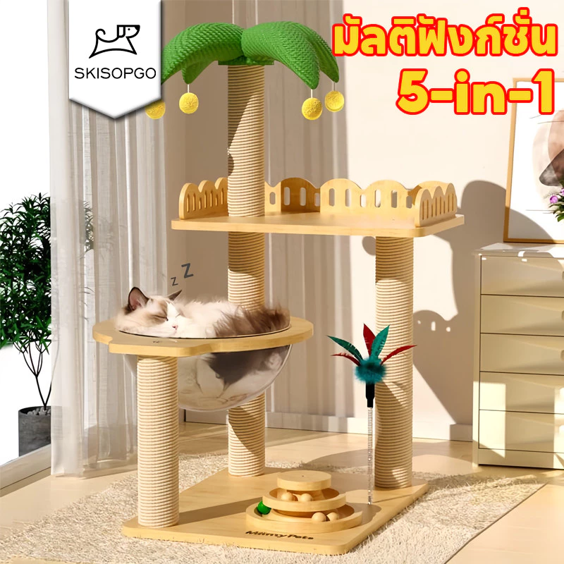 SKISOPGO คอนโดแมวไม้ 5 in 1 เป็น คอนโดแมวแบบมัลติฟังก์ชั่นที่รวมทั้งพื้นที่ปีนป่าย หลุมบ้านแมว เสาลับเล็บ จุดพักผ่อน และของเล่นไว้ในชิ้นเดียว — ช่วยให้แมว ออกกำลังกาย เล่น และพักผ่อนอย่างปลอดภัยในบ้าน พร้อมวัสดุไม้แข็งแรง เสาลับเล็บ ปรับกิจกรรมได้หลายระดับ เหมาะกับทั้งบ้านที่มีแมวหลายตัวและผู้ที่ต้องการให้แมวมีพื้นที่เล่นภายในบ้านอย่างต่อเนื่อง