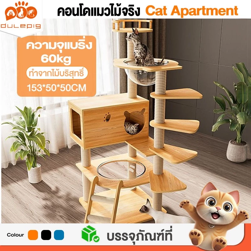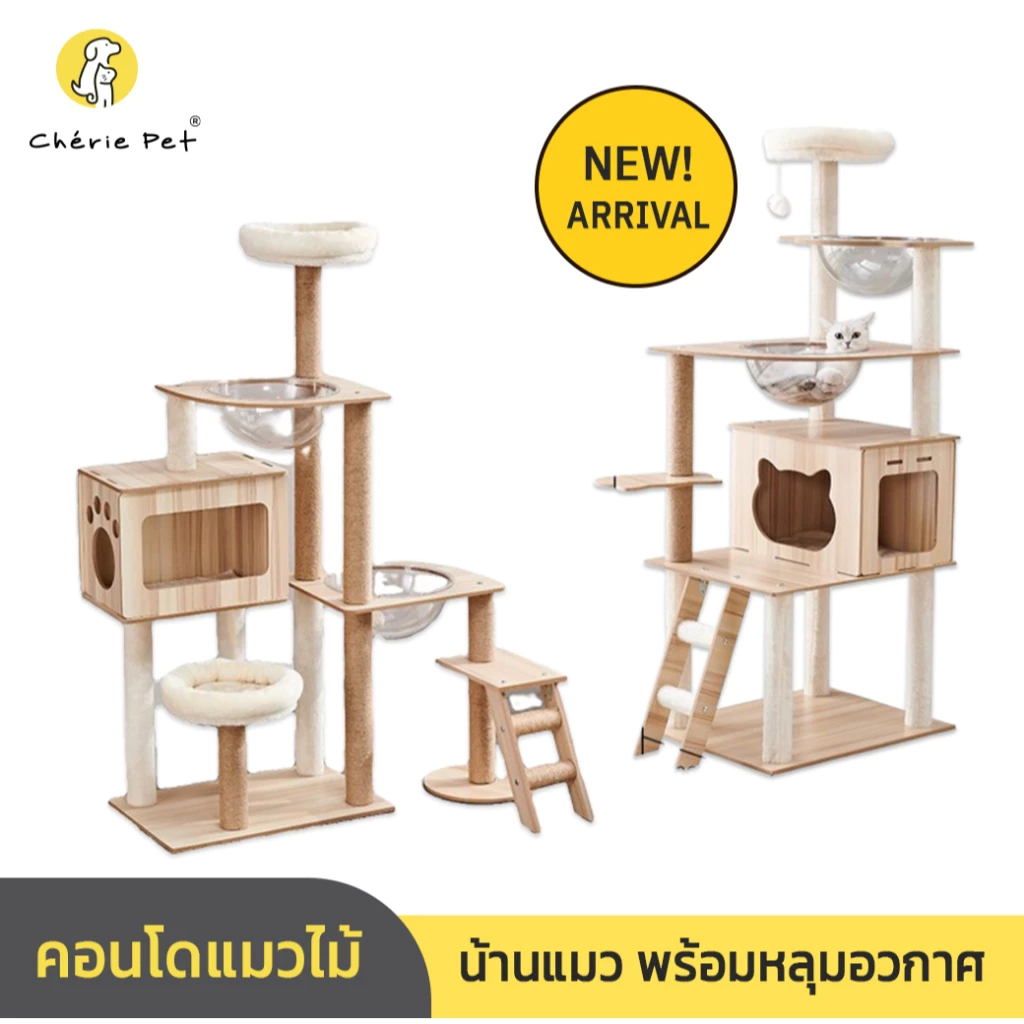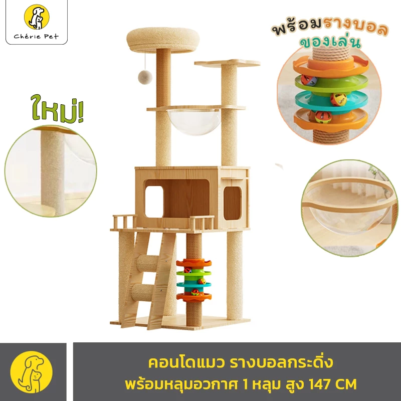 - Cherie Pet คอนโดแมว งานไม้ หลุมใสอวกาศ ของเล่นแมว