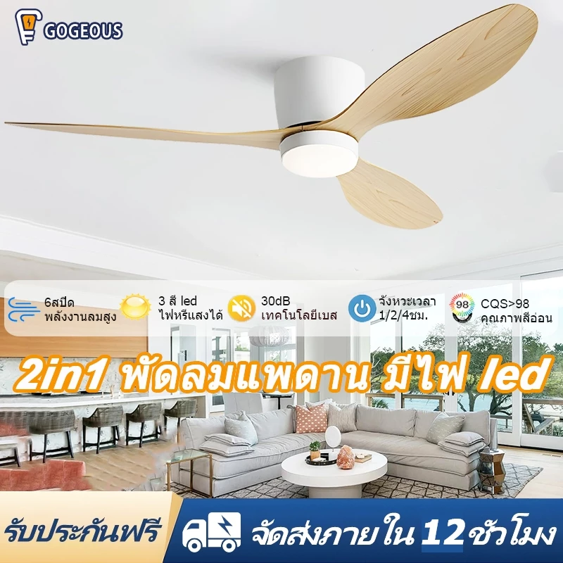 GOGEOUS พัดลมเพดาน 52 นิ้ว มอเตอร์ DC 6 ความเร็ว เป็นพัดลมเพดานที่ประหยัดพลังงาน เสียงเงียบ และปรับแรงลมได้ละเอียด มีไฟ LED 3 สี ใช้งานได้ยืดหยุ่น (ปรับสปีด +ตั้งเวลา +รีเวิร์สลม) เหมาะกับห้องนั่งเล่น ห้องนอน หรือห้องที่ต้องการลมเบา–แรงตามต้องการ