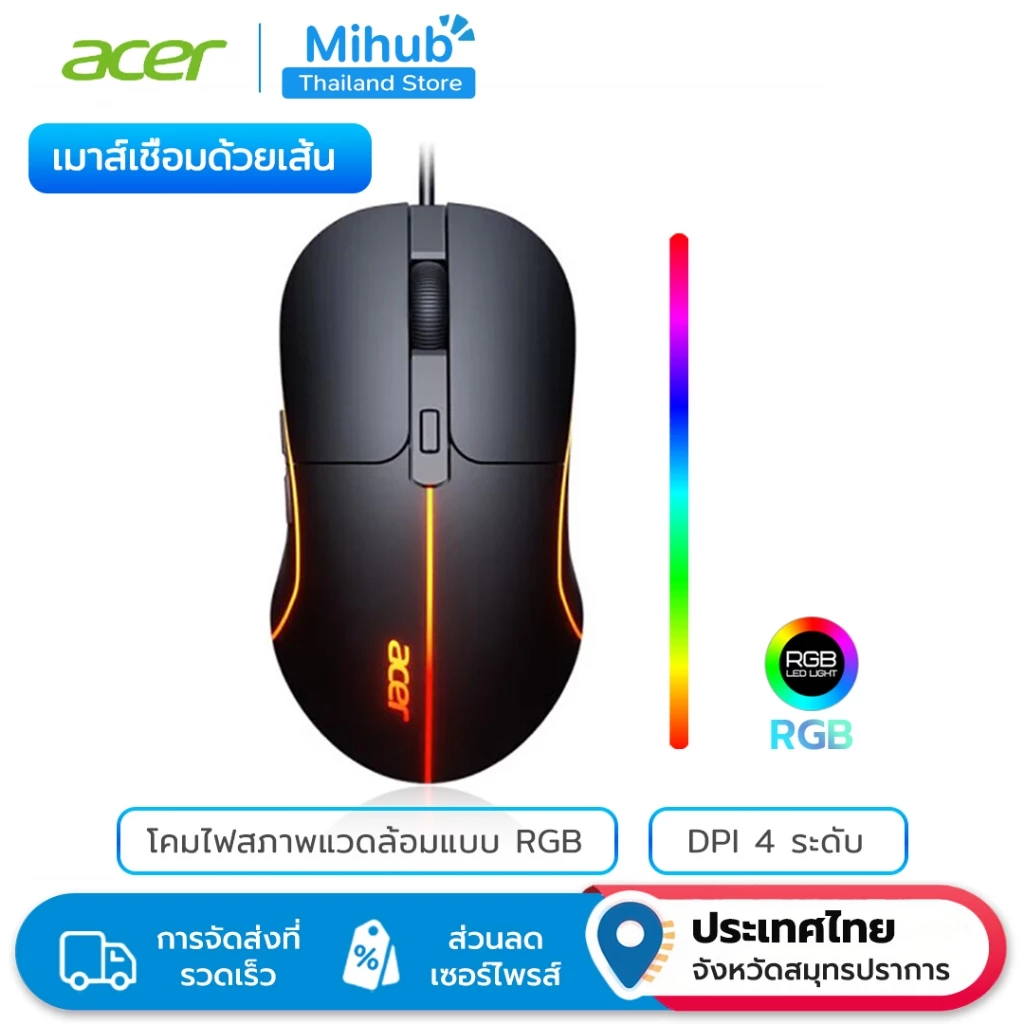 - Acer M115 เมาส์มีสาย USB เอฟเฟคไฟ 800 1600 2400 3200DPI