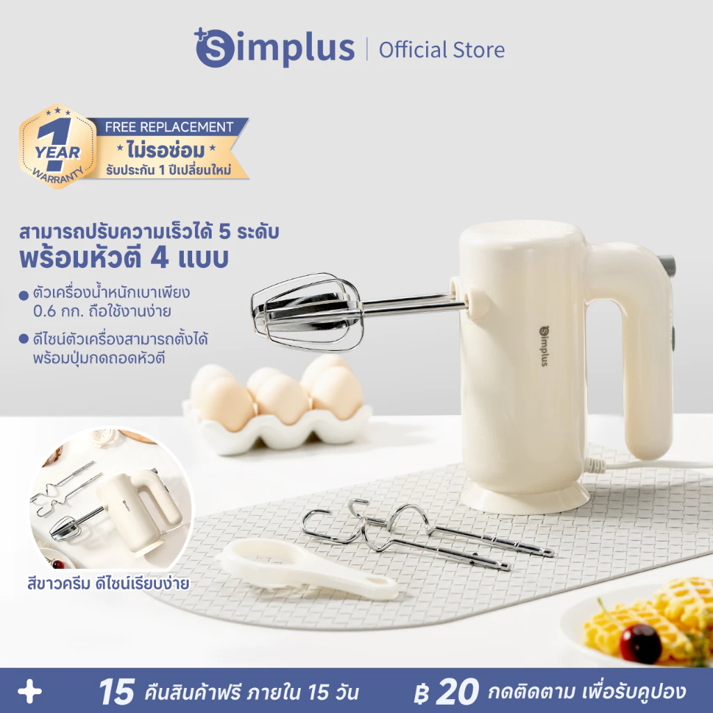 Simplus Mixer DCJH001 เป็นเครื่องผสมอาหารอเนกประสงค์ ใช้ผสมแป้ง ขนมและอาหารได้หลากหลาย มีหัวผสมหลายแบบ ชามขนาดใหญ่ เหมาะสำหรับทำขนมและอาหารที่บ้าน สะดวก ปลอดภัย และง่ายต่อการทำความสะอาด
