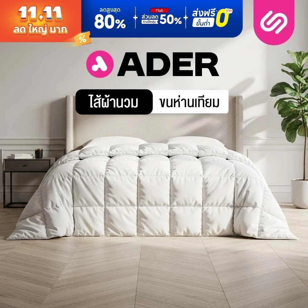 ไส้ผ้านวม SIAMLATEX Ader เป็นตัวเลือกที่ดีมากสำหรับผู้ที่มองหาผ้านวมระดับพรีเมียม ด้วยวัสดุขนห่านเทียมคุณภาพสูง ขนาดผืนนุ่มที่ให้ความรู้สึกหรูหรา และคุณสมบัติห่มแล้วเย็นสบาย เหมาะทั้งในห้องแอร์หรือห้องธรรมดา หากคุณต้องการผ้านวมที่ “นุ่มสบาย + อุ่นพอเหมาะ + ไม่ร้อนเกิน”