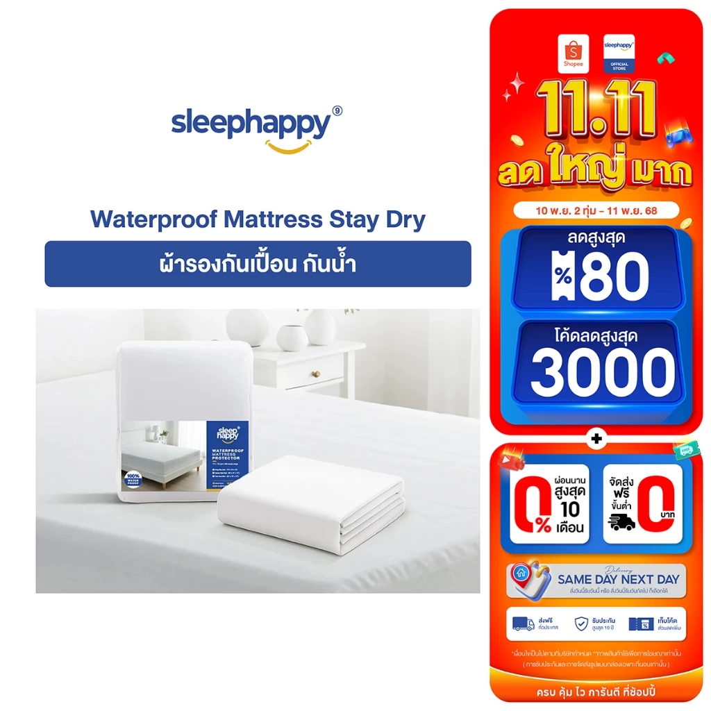 - มีไซซ์ให้เลือกใช้งาน เช่น King Size ขนาด 100″ × 90″ และ Twin Size ขนาด 70″ × 90″ เหมาะกับเตียงขนาด 6 ฟุตหรือเตียงเล็กกว่า