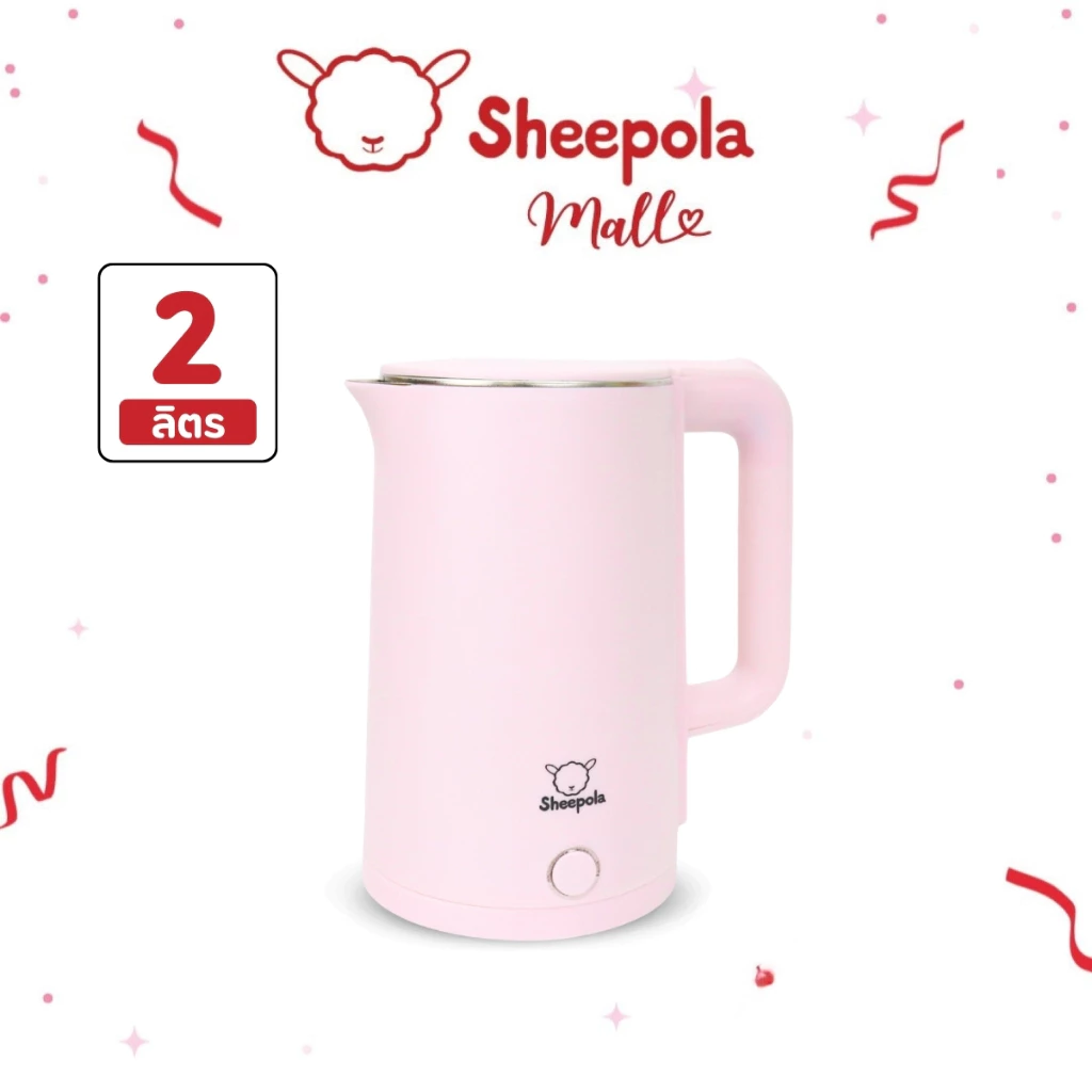 - SHEEPOLA กาต้มน้ำไฟฟ้า 2 ลิตร สีชมพู มินิมอล