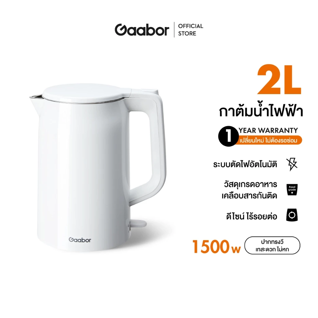 - Gaabor 2 ลิตร กาต้มน้ำร้อนไฟฟ้า 1500W เดือดเร็ว รุ่น EK-20M01A