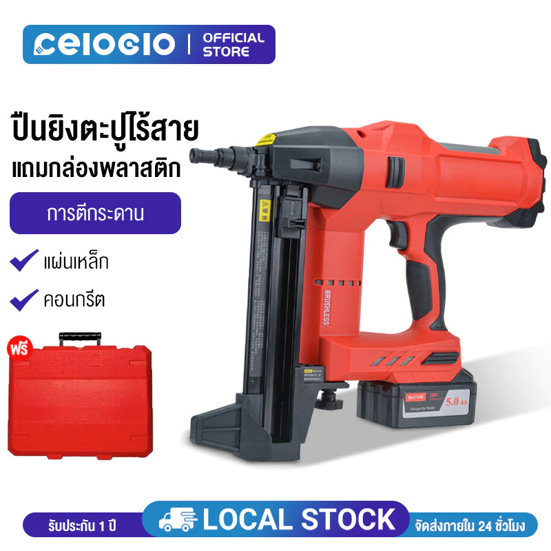 - Celoglo ปืนยิงตะปูคอนกรีต ระบบแบตเตอรี่ พร้อมกล่องเก็บพรีเมี่ยม+หัวปรับ10หัว Naiitask