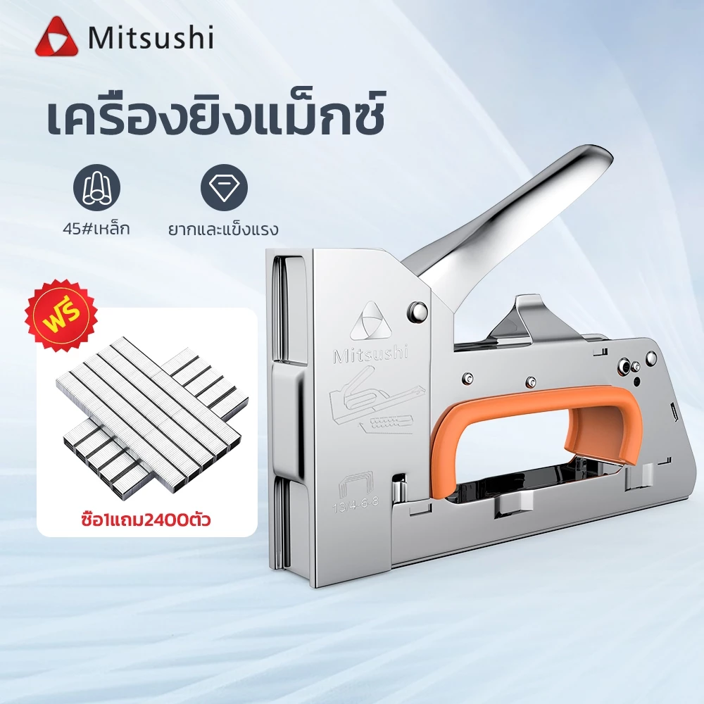 Mitsushi เครื่องยิงตะปูไฟฟ้า 2400W (ขาเดี่ยว F30) เป็นปืนแม็กไฟฟ้ากำลังสูงที่เหมาะกับงานตกแต่งภายในและงานฟินิชชิ่ง เช่น ติดบัว ติดกรอบ และงานเฟอร์นิเจอร์ รองรับแม็กแบบ F ความยาวราว 10–30 มม. พร้อมแม็กกาซีนความจุประมาณ 80–120 นัด และฟีเจอร์มาตรฐานอย่างปรับความลึกและระบบป้องกันการยิงโดยไม่ตั้งใจ