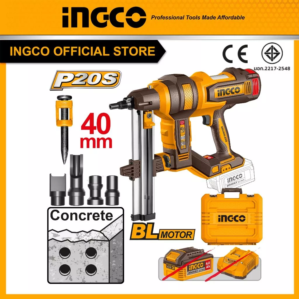 - INGCO ปืนยิงตะปูคอนกรีตไร้สาย 20V CCNLI9005
