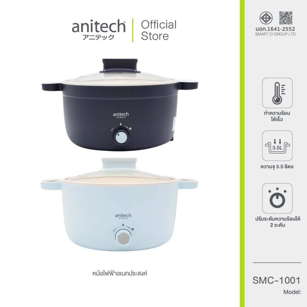- Anitech หม้อไฟฟ้าอเนกประสงค์ 1000 วัตต์ ความจุ 3.5L. รุ่น SMC-1001