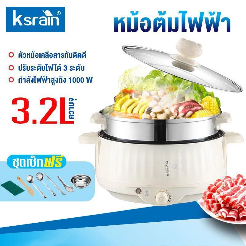 - Ksrain หม้อไฟฟ้า 3L กระทะไฟฟ้า เคลือบสารกันติดอเนกประสงค์