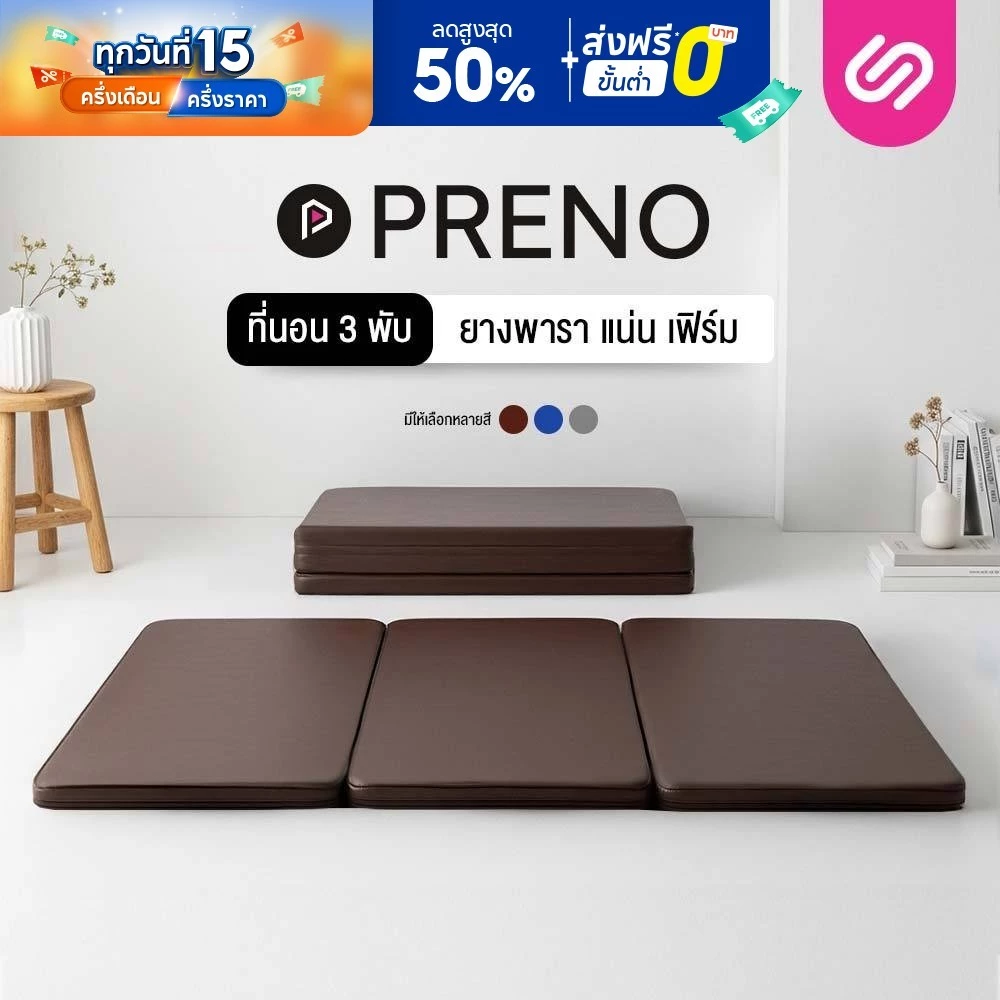 Siamlatex Preno ที่นอนปิคนิคยางพารา 3 พับ เป็นที่นอนพับได้อเนกประสงค์ที่ พับเก็บง่าย เคลื่อนย้ายสะดวก และทำความสะอาดง่าย ด้วยปลอก PVC-Plus กันน้ำและคราบ พร้อมพื้นยางพาราแน่นเด้งที่ให้ความสบายกว่าแผ่นรองธรรมดา เหมาะทั้งใช้ในบ้านและพกไปใช้นอกสถานที่