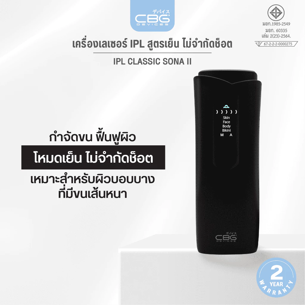 CBG Devices ซีรีส์ใหม่มี 3 รุ่น IPL NAKED, IPL CLOUD, และ Classic Sona II สำหรับกำจัดขนถาวรและฟื้นฟูผิวที่บ้านอย่างปลอดภัย แต่ละรุ่นมีจำนวนช็อตสูง ปรับพลังงานได้หลายระดับ และมีระบบ Skin Touch Sensor เพิ่มความปลอดภัย เหมาะสำหรับผู้ใช้ที่ต้องการความสะดวก ใช้งานได้ยาวนาน และปรับตามสภาพผิวหรือบริเวณที่ต้องการกำจัดขนได้หลากหลาย