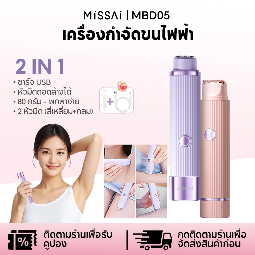 - Missai เครื่องกำจัดขนไฟฟ้า 2-in-1 BD05