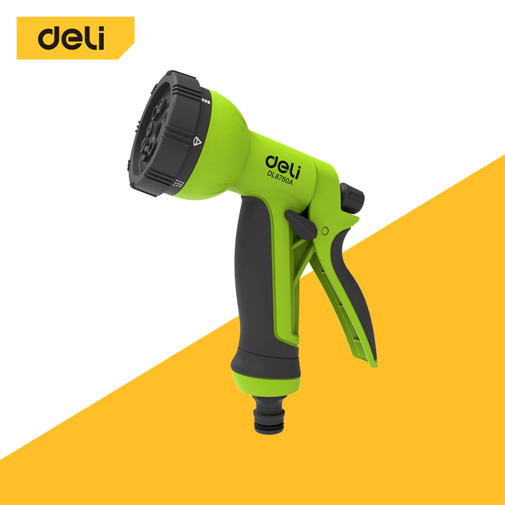 Deli Plastic Trigger Nozzle (7 แบบ) เป็นหัวฉีดน้ำพลาสติกราคาย่อมเยา เหมาะกับงานรดน้ำต้นไม้และทำความสะอาดเบา ๆ สามารถปรับสไตล์น้ำได้หลากหลาย (7 แบบ) และมีดีไซน์จับถนัด มือ เหมาะกับการใช้งานในบ้านสวน