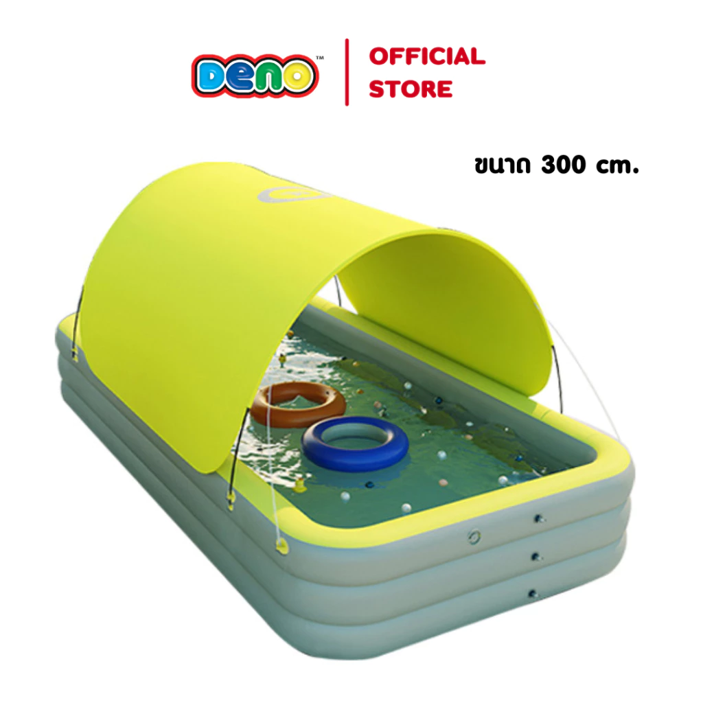 - มี หลังคา / ร่มกันแดด (sunshade / canopy) ในตัว ช่วยให้เด็กเล่นน้ำได้โดยไม่โดนแสงแดดโดยตรงมากเกินไป เช่น รุ่น “Inflatable Pool … with Canopy” ขนาด 1.4 × 1.14 × 1.14 ม. พร้อมหลังคา removable