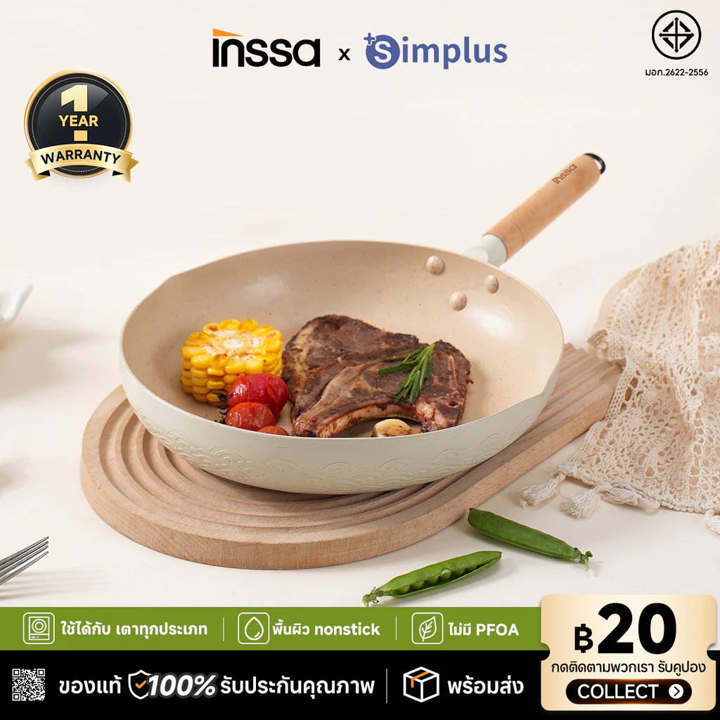 กระทะ INSSA Nonstick ขนาด 26 ซม. เหมาะสำหรับผัด ทอด ไข่เจียว ใช้งานง่ายในครัวเรือน แข็งแรงและไม่ติดกระทะ