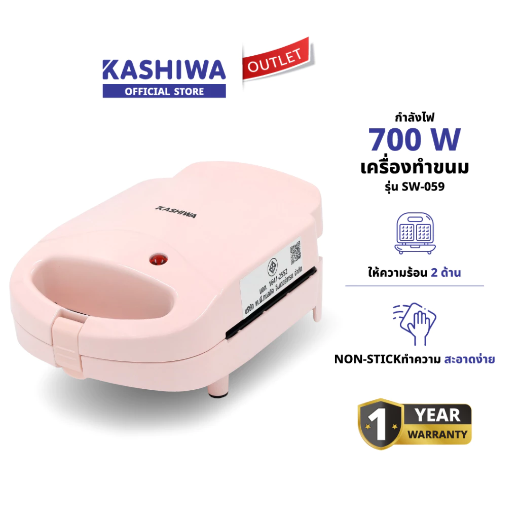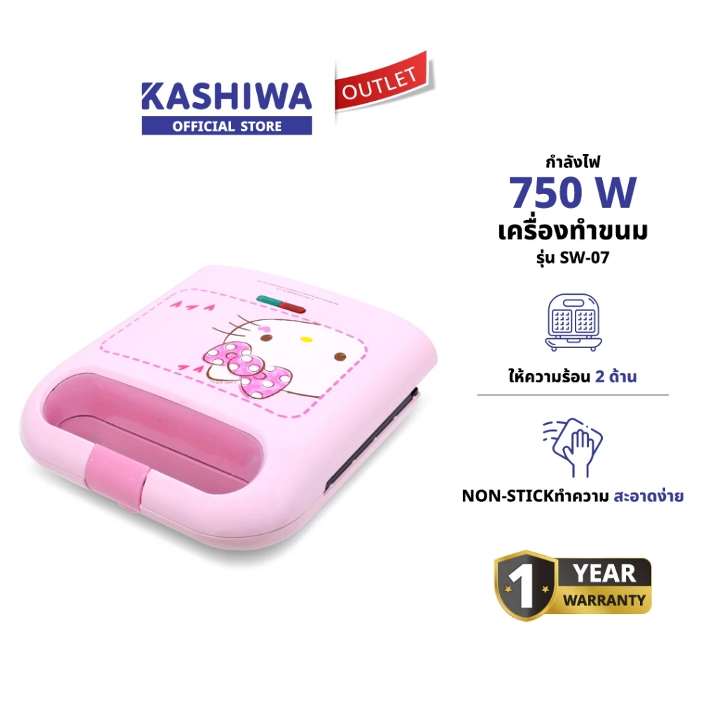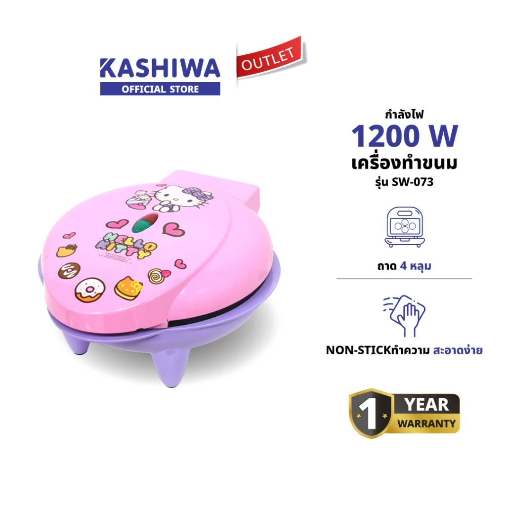 KASHIWA SW-073 Hello Kitty เป็นเครื่องทำขนมแบบมัลติฟังก์ชันที่ออกแบบมาให้สามารถอบวาฟเฟิล มินิโดนัท หรือขนมจิ๋วต่าง ๆ ได้ ด้วยพลังไฟ 1,200 วัตต์ และแม่พิมพ์เคลือบ non-stick ช่วยให้ขนมไม่ติดพิมพ์ ดีไซน์น่ารักลาย Hello Kitty เหมาะสำหรับคนที่อยากมีเครื่องทำขนมตัวเล็ก ๆ ใช้เองที่บ้านโดยไม่เปลืองพื้นที่ และให้ผลลัพธ์ที่ขนมสุกสวยออกมาได้ง่าย
