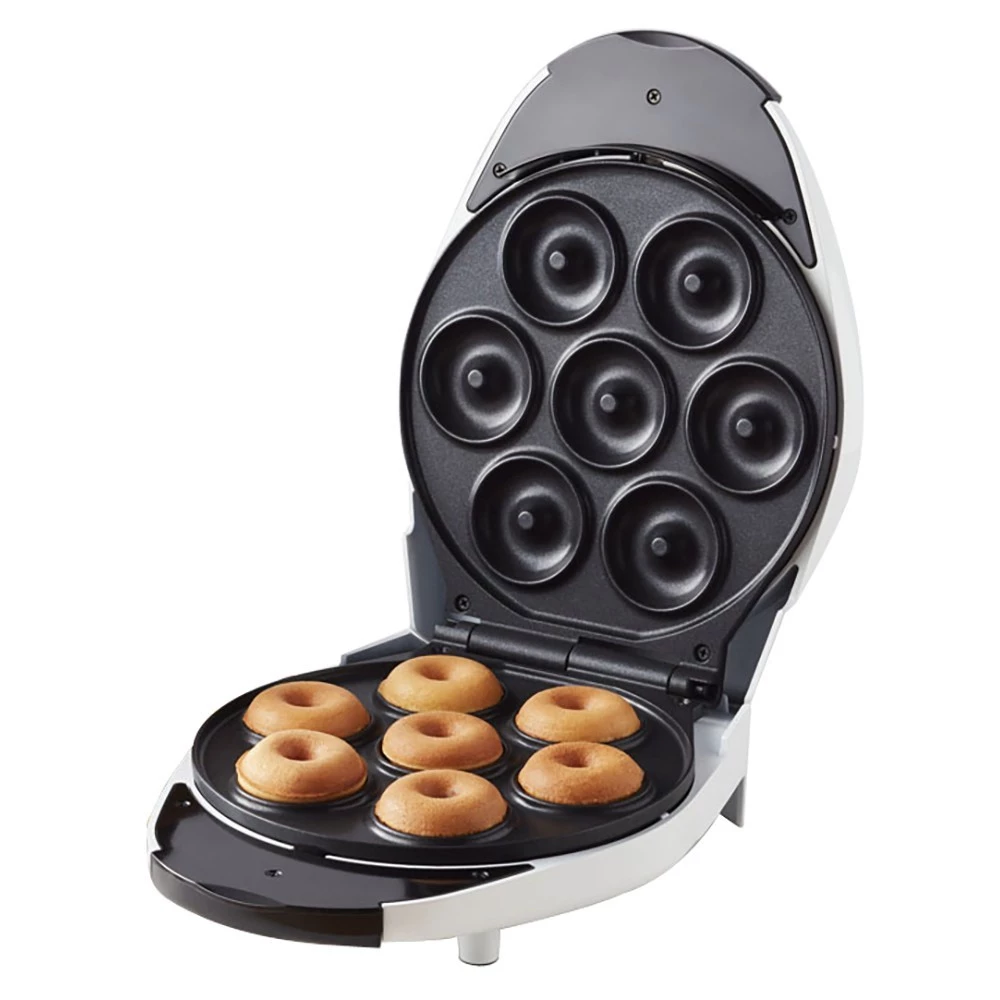 เครื่องอบโดนัท 7 หลุมพร้อมแม่พิมพ์สองด้าน non-stick เป็นตัวเลือกที่ดีสำหรับผู้ที่ต้องการทำโดนัทจิ๋วเป็นของว่างในบ้าน ได้หลายชิ้นพร้อมกัน จุดเด่นคือความร้อนทั่วถึง (ทั้งด้านบนและล่าง) และการที่โดนัทไม่ติดพิมพ์ ทำให้แกะออกง่ายและทำความสะอาดสะดวก เหมาะกับผู้ที่เริ่มทดลองทำโดนัทหรืออยากมีเครื่องทำโดนัทเล็ก ๆ ใช้งานที่บ้าน