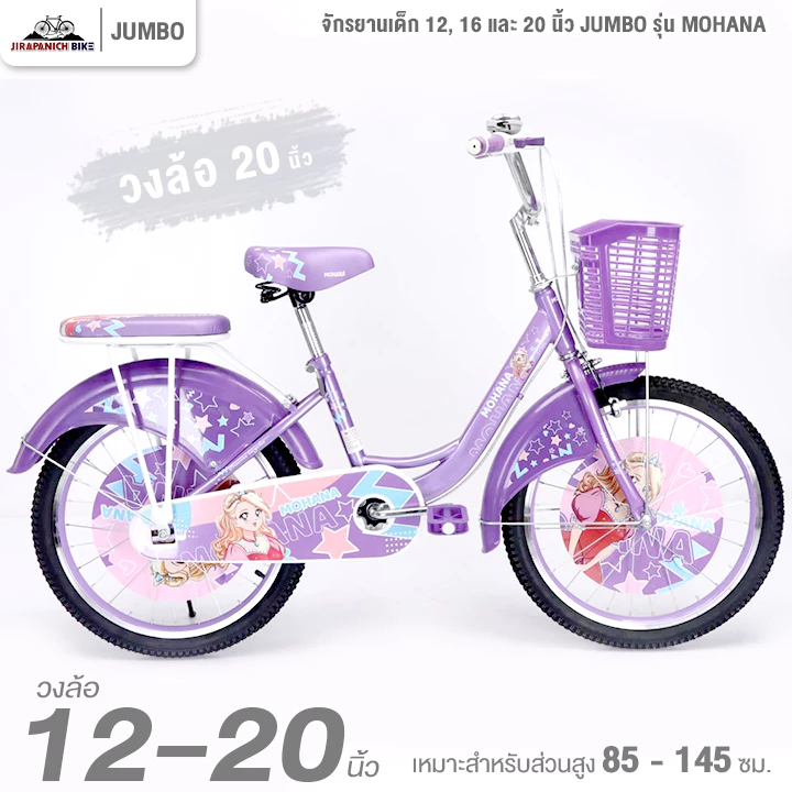 - อุปกรณ์เสริม: มักมาพร้อม “ตะกร้าหน้า / เบาะซ้อนท้าย /กระดิ่ง /บังโคลน /ฟีเจอร์พื้นฐานสำหรับจักรยานเด็ก”