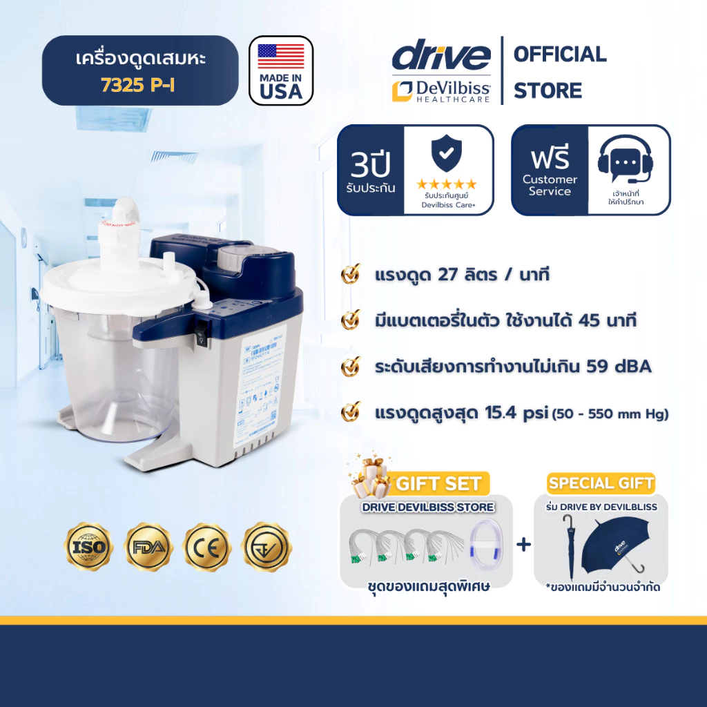 - Devilbiss เครื่องดูดเสมหะ รุ่น 7325 P-I น้ำหนักเบา เสียงเบา