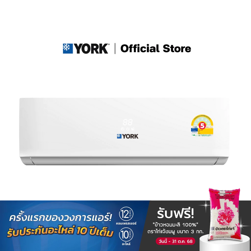 - รับประกันคอมเพรสเซอร์ 3 ปี และตัวเครื่อง 1 ปี