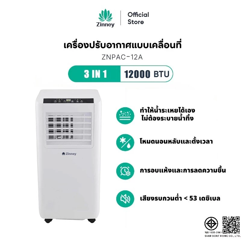 - Zinney แอร์เคลื่อนที่ ขนาด 7000-12000 BTU รุ่น ZNPAC-07A