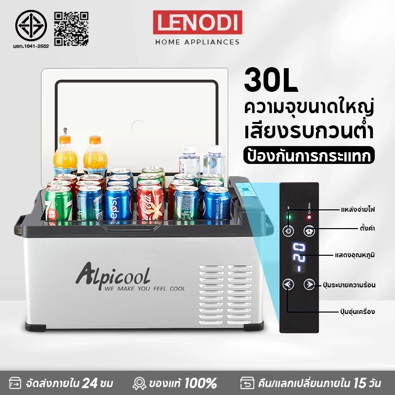 1. LENODI ตู้เย็นพกพา ตู้เย็นในรถ เครื่องทำความเย็น ตู้เย็นมินิ