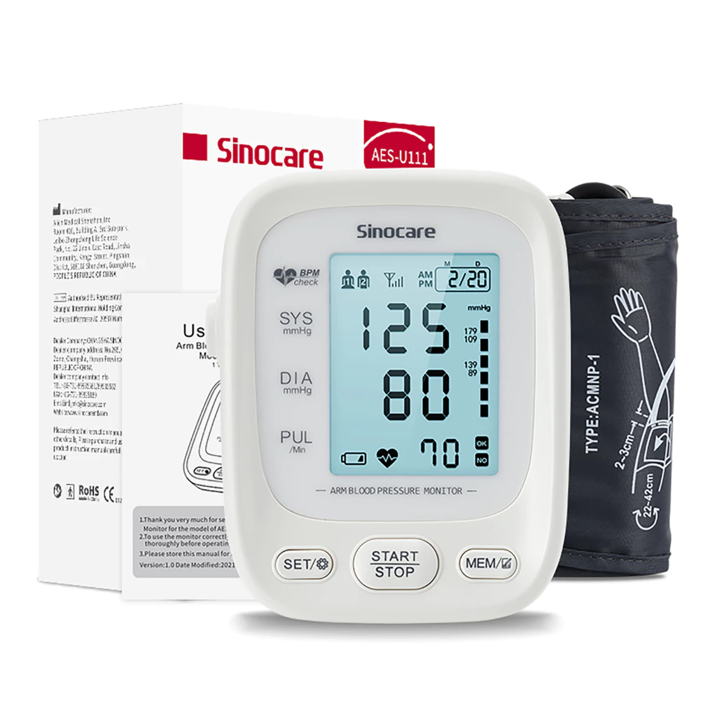 เครื่องวัดความดัน Sinocare รุ่น AES-U111 เป็นแบบดิจิตอลต้นแขน ใช้งานง่าย มีเสียงพูดและบันทึกผลได้ 2 ผู้ใช้ × 90 ค่าวัดความดันและชีพจรได้อย่างแม่นยำ มีระบบแจ้งเตือนหัวใจเต้นผิดจังหวะ และหน้าจอแสดงผลขนาดใหญ่ เหมาะสำหรับใช้งานที่บ้าน ใช้ถ่าน AAA 4 ก้อน และรองรับขนาดแขน 22–42 ซม.