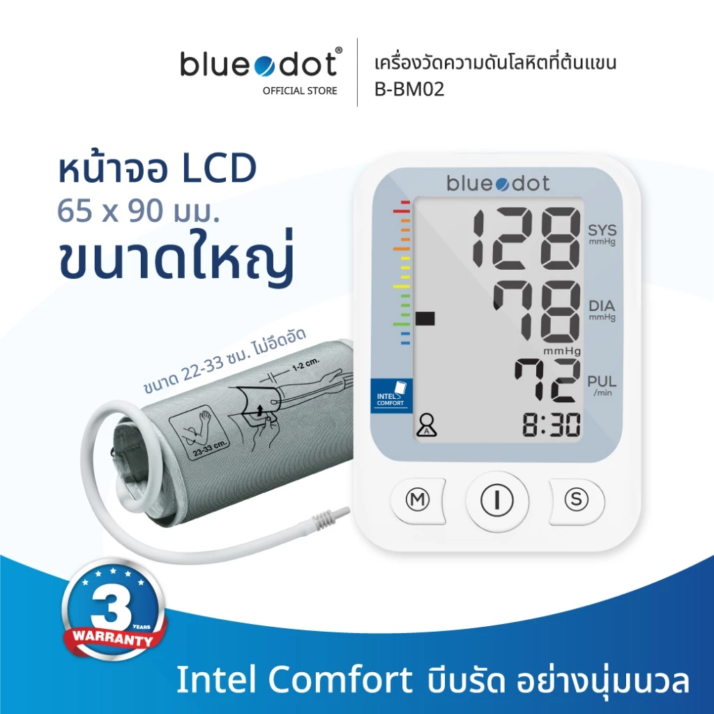 - รองรับขนาดแขน (cuff) ประมาณ 23-33 ซม.