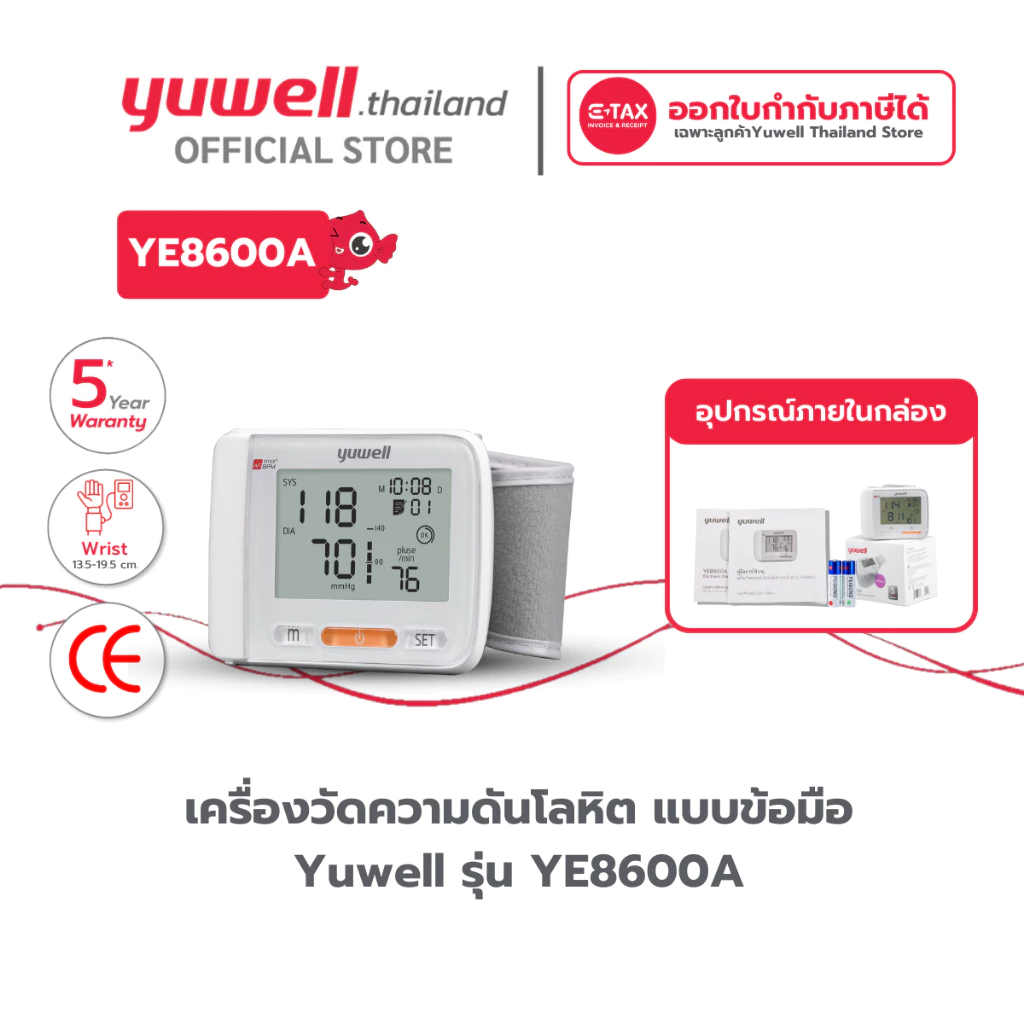 - Yuwell เครื่องวัดความดันดิจิตอล แบบข้อมือ รุ่น YE8600A