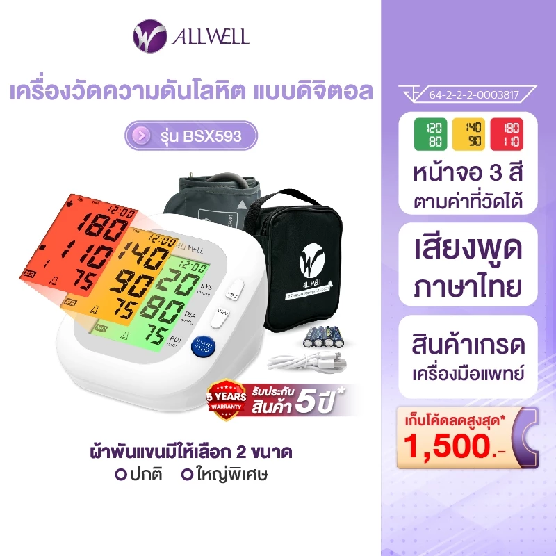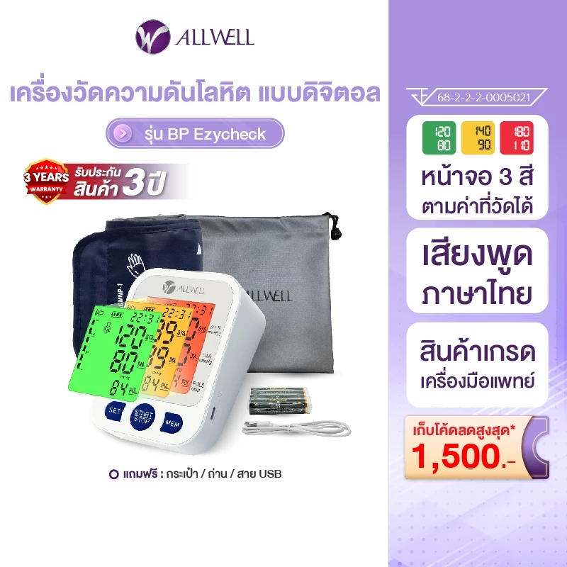 ALLWELL JPD-HA120 และ ALLWELL JPD-HA101 เป็นเครื่องวัดความดันยอดนิยมสำหรับใช้งาน ที่บ้าน โดยมีความสามารถครบถ้วน: วัดความดัน / ชีพจรแบบต้นแขน, รองรับผู้ใช้ 2 คน, หน่วยความจำการวัด, ฟังก์ชันเฉลี่ยหลายครั้ง, ตรวจจับหัวใจผิดจังหวะ และมีหน้าจอใหญ่ ดูง่าย. โดยเฉพาะรุ่น JPD-HA120 มีการเชื่อมต่อ Bluetooth และรองรับแอปเพื่อเก็บข้อมูลสุขภาพ ในขณะที่ทั้งสองรุ่นได้โฆษณาว่ามี “เสียงพูดภาษาไทย” ซึ่งเหมาะมากสำหรับผู้ใช้งานที่อยากฟังผลเสียง