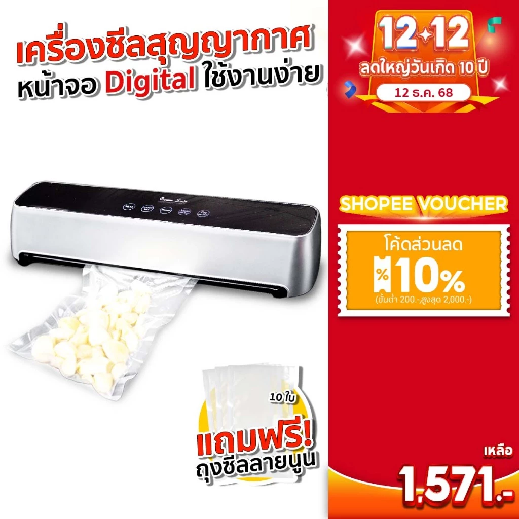 - แถมถุงสูญญากาศ 10 ใบ (ขนาดประมาณ 17×25 cm)