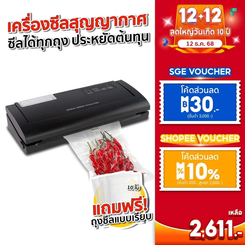 - ฟังก์ชัน 2-in-1: ซีลสูญญากาศ + ซีลปากถุง
