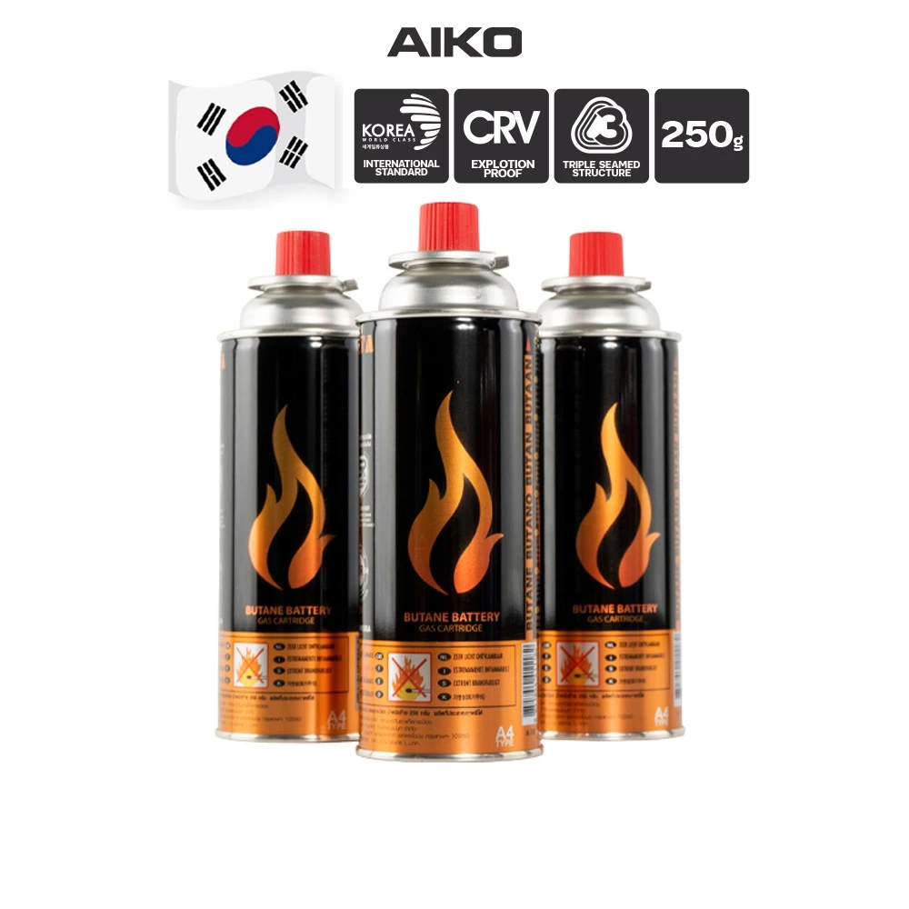 แก๊สกระป๋อง AIKO GC-1000 (250 g ต่อกระป๋อง, แพ็ค 24 กระป๋อง) ถือเป็นตัวเลือกที่น่าสนใจมากสำหรับผู้ที่ต้องการ จำนวนมาก/ใช้บ่อย เช่น งานแคมป์ปิ้ง / กิจกรรมกลางแจ้ง / งานกลุ่ม โดยมีจุดเด่นเรื่องแพ็คใหญ่และระบบความปลอดภัย (CRV, TSR, RVR) ที่ช่วยเพิ่มความมั่นใจ