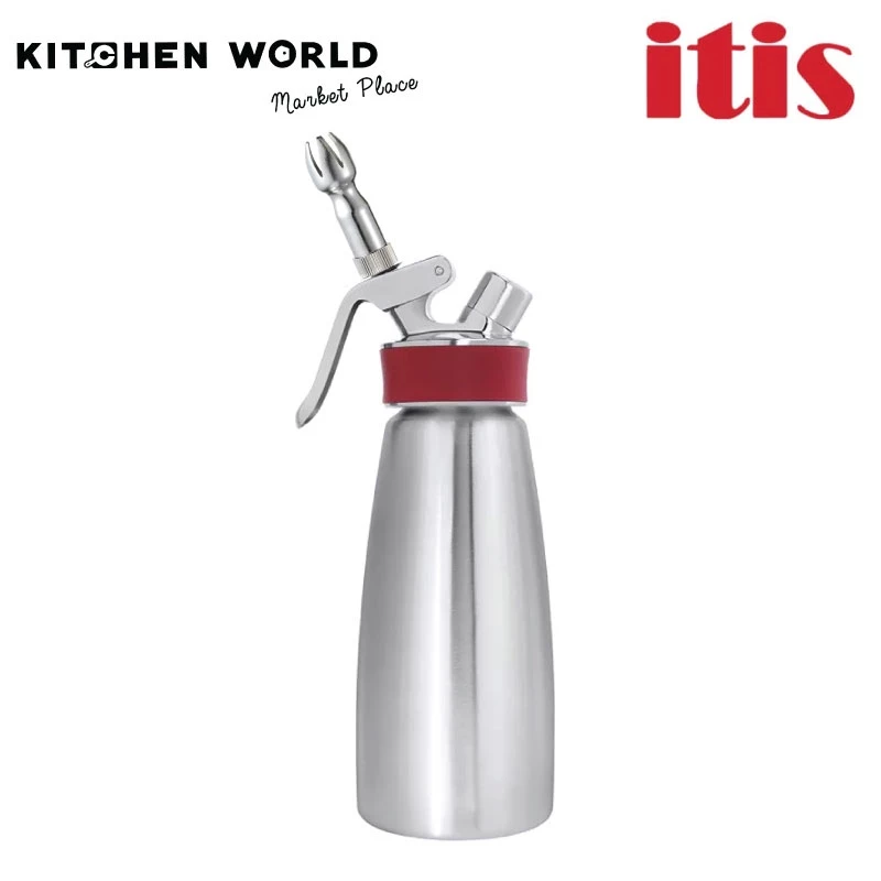 ITIS Professional Gourmet Whip Plus 1.0L เป็นกระบอกวิปครีม สแตนเลสแท้ เกรดโปร เหมาะสำหรับร้านกาแฟ เบเกอรี่ และร้านอาหารที่ต้องใช้งานบ่อย จุดเด่นคือ แข็งแรง ทนทาน ปลอดภัย และจุเยอะ ใช้งานได้หลากหลายกว่าวิปครีม เช่น มูสและซอสต่าง ๆ ข้อดีคือคุณภาพระดับมืออาชีพ แต่ข้อสังเกตคือ ราคาสูงและค่อนข้างใหญ่ ถ้าใช้ในบ้านอาจไม่สะดวกเท่ารุ่น 500ml