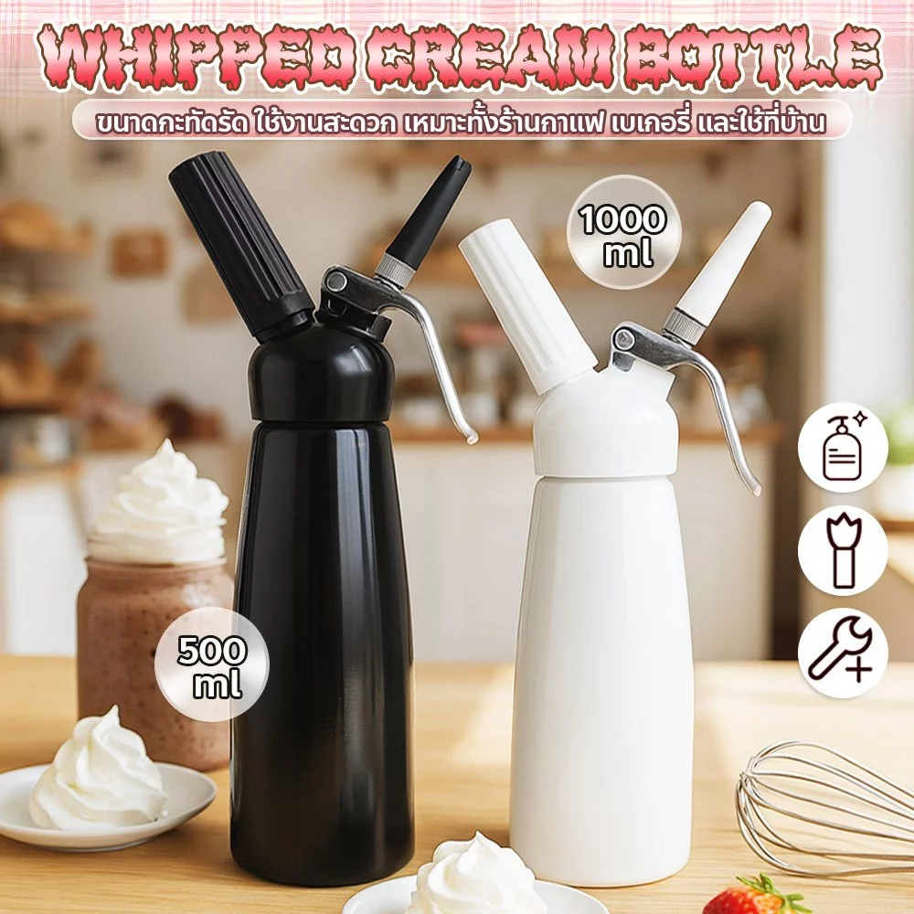 - allgen ขวดวิปครีมหัวฉีดอลูมิเนียม ทนทาน ใช้ง่าย กระบอกวิปปิงครีม 500ml.